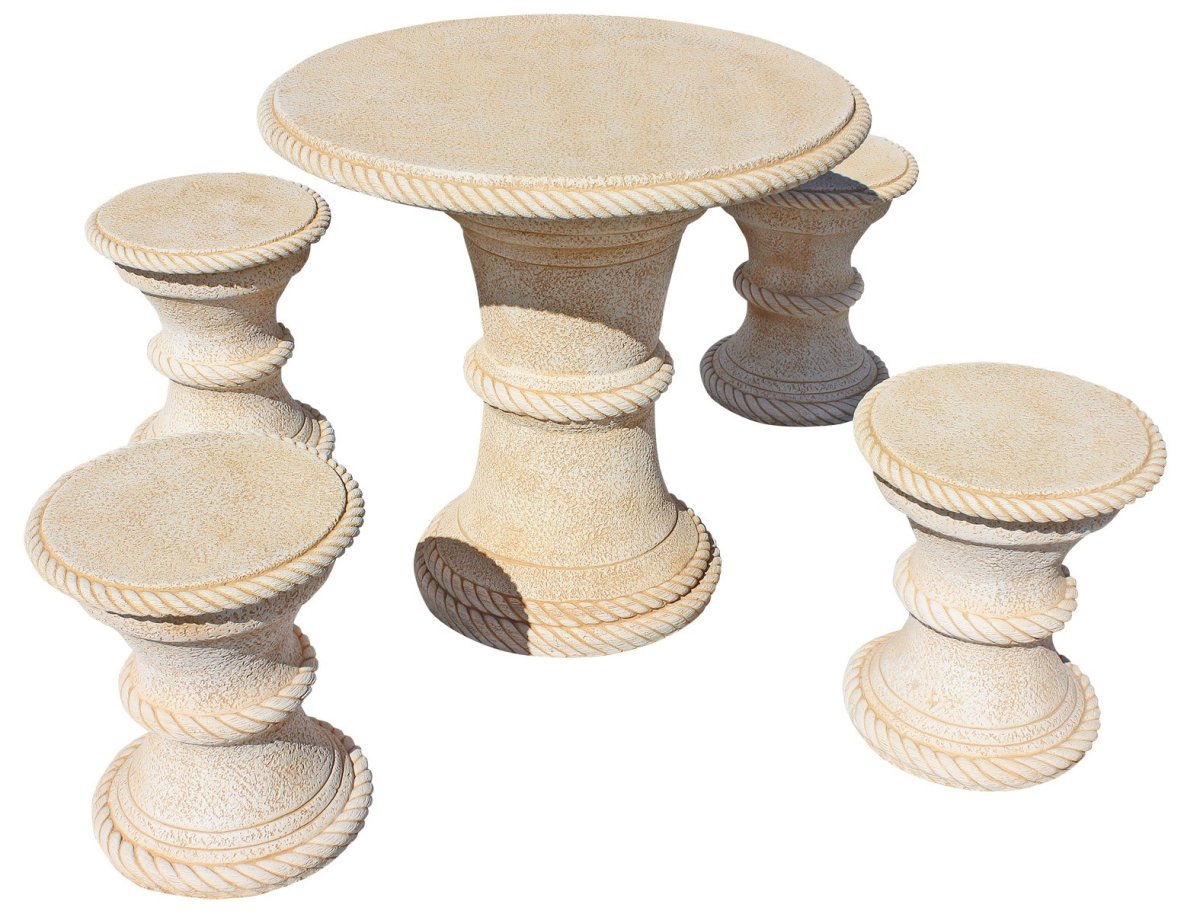 El conjunto viene provisto de 4 taburetes a juego. Fabricado en materiales de alta calidad, resistente a la intemperie y las heladas y disponible en diferentes acabados: natural, pulido y con azulejos. ¡Escoge tu favorito!