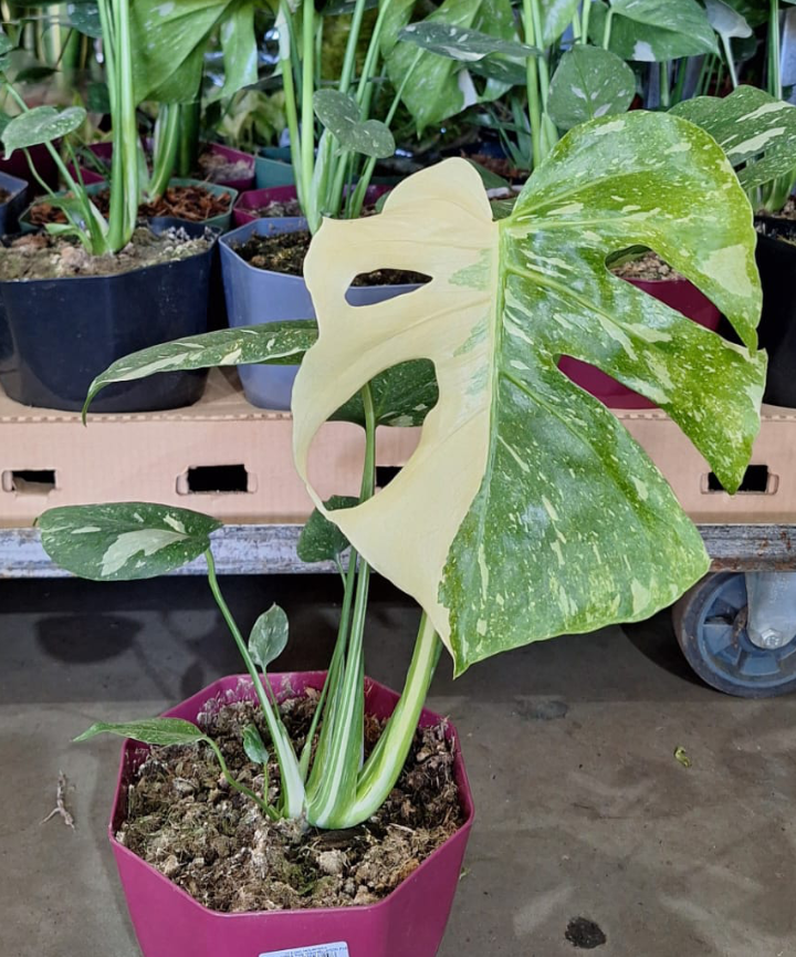 La Monstera Thai Constellation es una joya botánica de colección. Su follaje verde intenso con variegaciones en crema recuerda a un cielo estrellado, y cada hoja es una obra única. Una planta rara, elegante y muy buscada que llega en preventa exclusiva a Peppo.