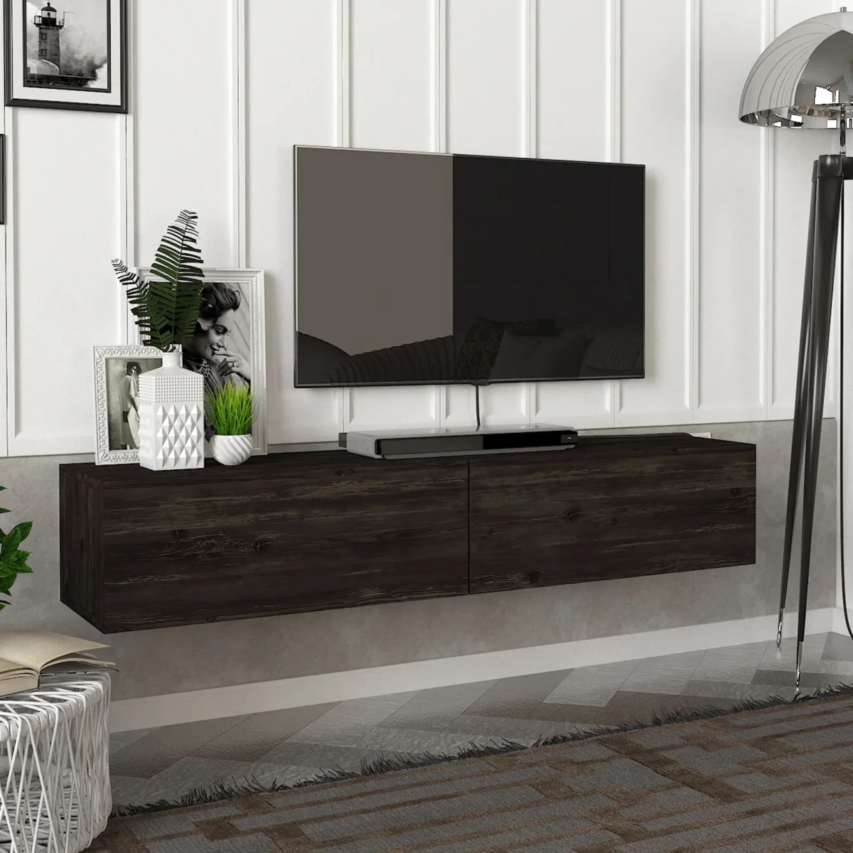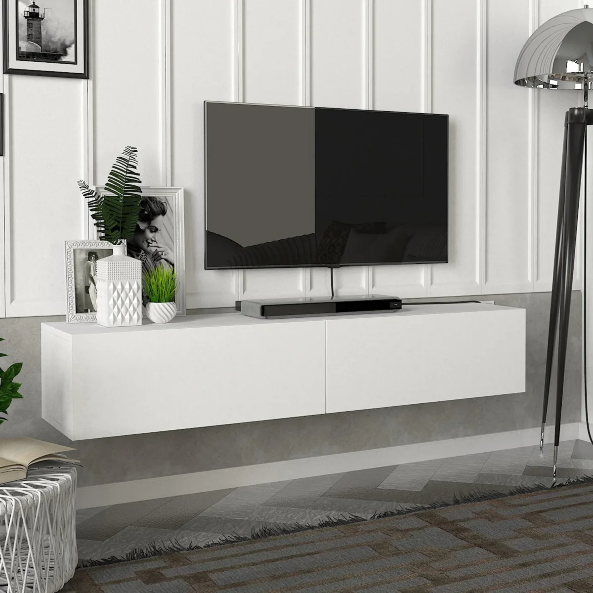 Nuestra mesa de televisión flotante se puede montar de manera sencilla y sin complicaciones en la pared y, con su diseño moderno y el práctico espacio de almacenamiento en su interior, es un complemento elegante para su sala de estar o su rincón de entretenimiento.