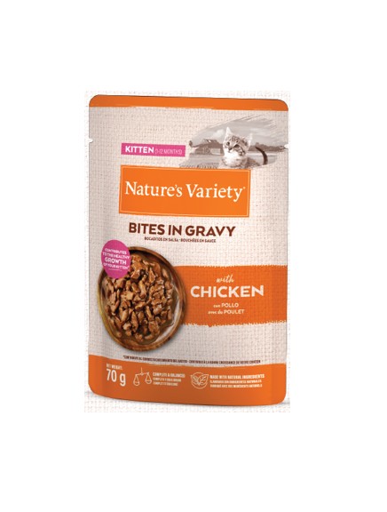NATURE’S VARIETY CAT KITTEN BOCADITOS EN SALSA CON POLLO 70g (28uds./caja)