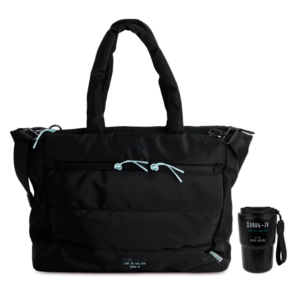 El pack incluye un elegante bolso totebag en color negro, confeccionado con materiales reciclados, que es tan práctico como estiloso. Su diseño versátil permite llevarlo de tres maneras: como bandolera, bolso o maletín, adaptándose a cualquier situación, ya sea en la oficina, en reuniones de trabajo o en tus aventuras diarias por la ciudad. Gracias a su tono negro y su estilo elegante, es el accesorio ideal para combinar con cualquier tipo de outfit, desde los más formales hasta los más casuales. Además, cuenta con múltiples bolsillos externos para facilitar el acceso y la organización de tus pertenencias, y un compartimento interno acolchado especial para portátiles de hasta 15 pulgadas. Este bolso no solo es una herramienta funcional para tu día a día, sino también un recordatorio constante de que cada día puede ser una pequeña aventura. Ideal para profes que llevan de todo en sus increíbles y mágicos bolsos.