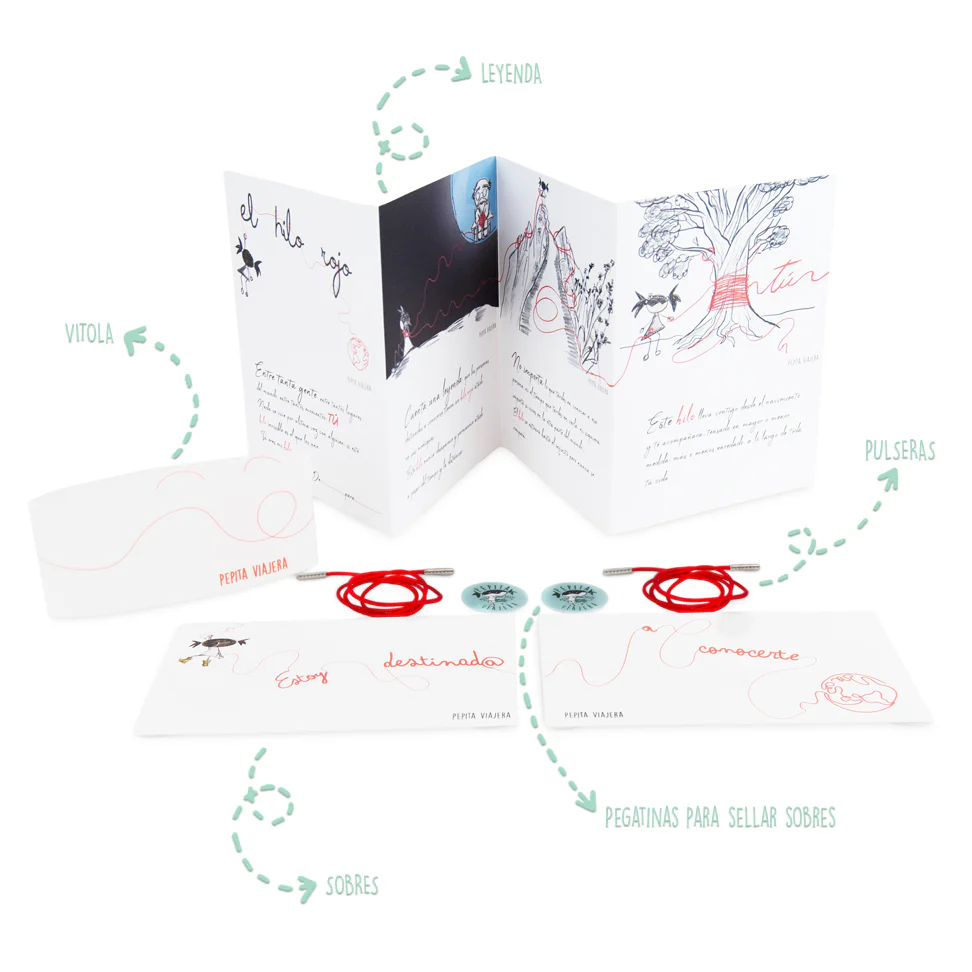 ✔ Láminas ilustradas con la Leyenda del Hilo Rojo, en formato acordeón y papel de alta calidad.