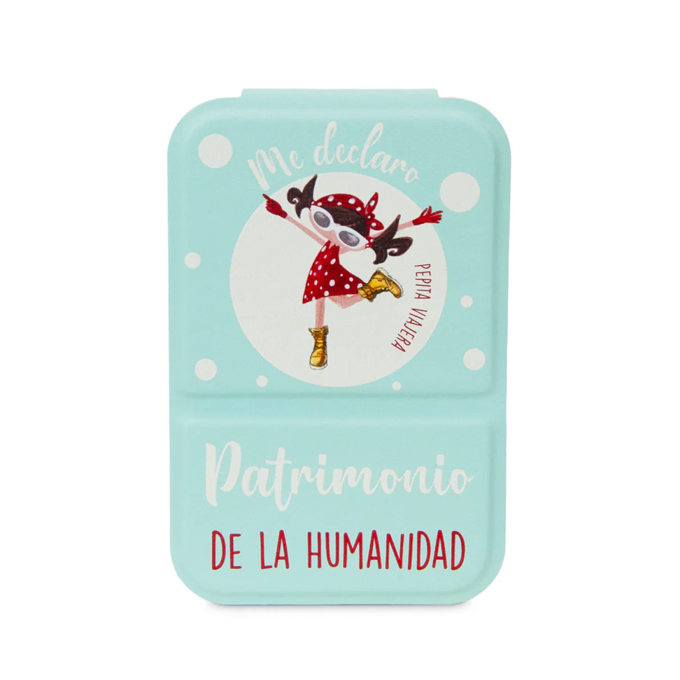 El estuche triple es un homenaje a una actividad escolar real: ¿y si una persona pudiera ser Patrimonio de la Humanidad? Así nace esta pieza con tres compartimentos que organiza con alegría, perfecta para lápices, cargadores o pasaportes.