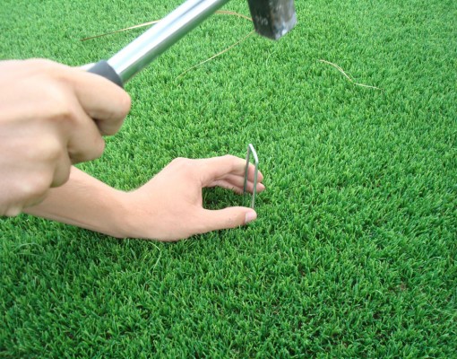 Puedes utilizar los pinchos de sujeción para césped artificial para fijar el césped artificial al suelo y para reforzar las juntas. Sólo para instalaciones sobre tierra.