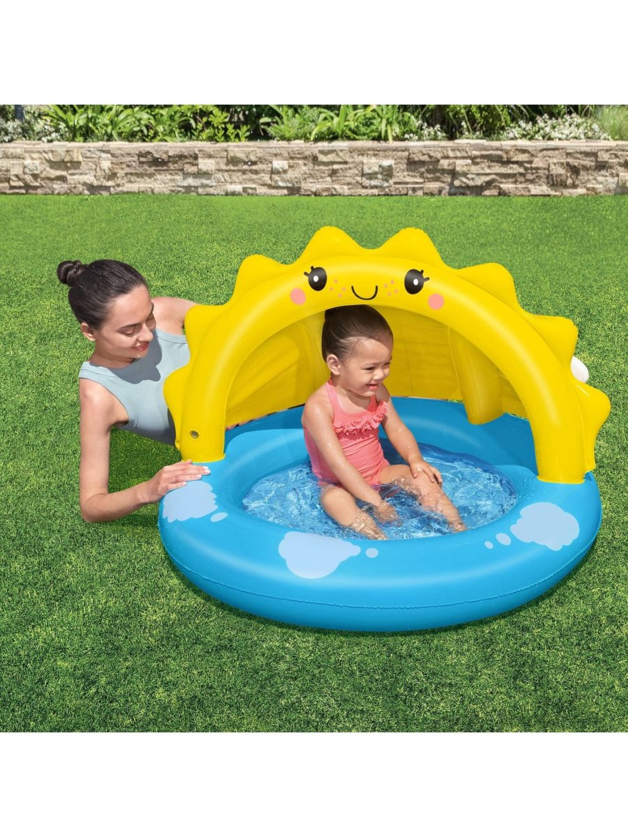 Diversión segura bajo el sol. La piscina Sunny Days ha sido diseñada especialmente para los más pequeños, combinando frescura y protección gracias a su techo incorporado. Ideal para tardes de juego en el jardín, su diseño colorido y estructura resistente la convierten en la compañera perfecta del verano.