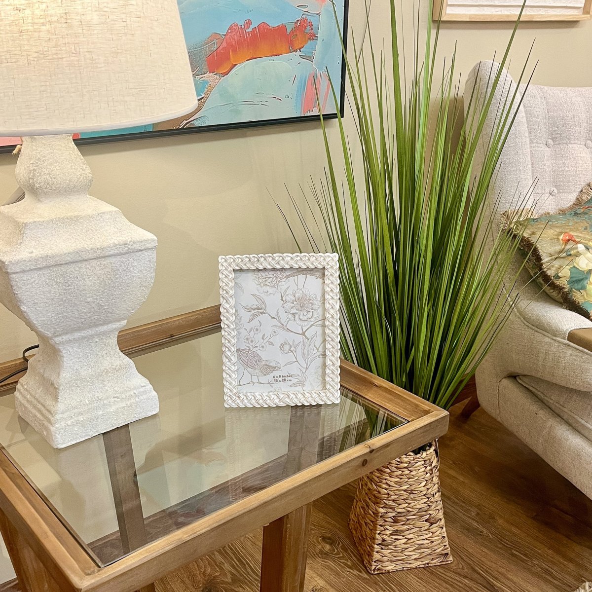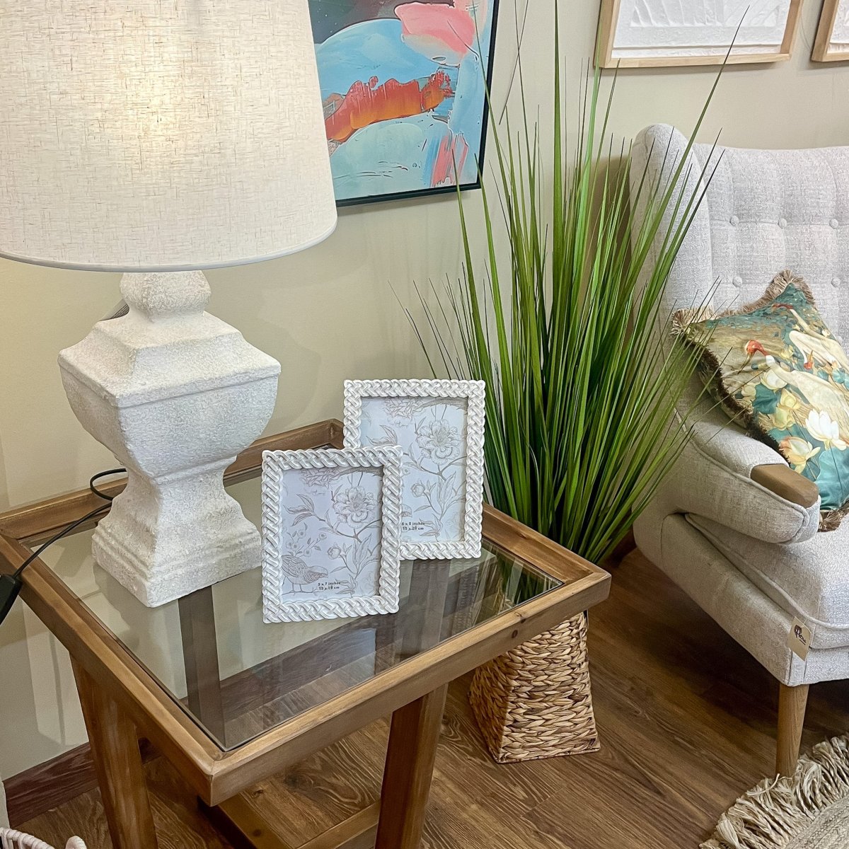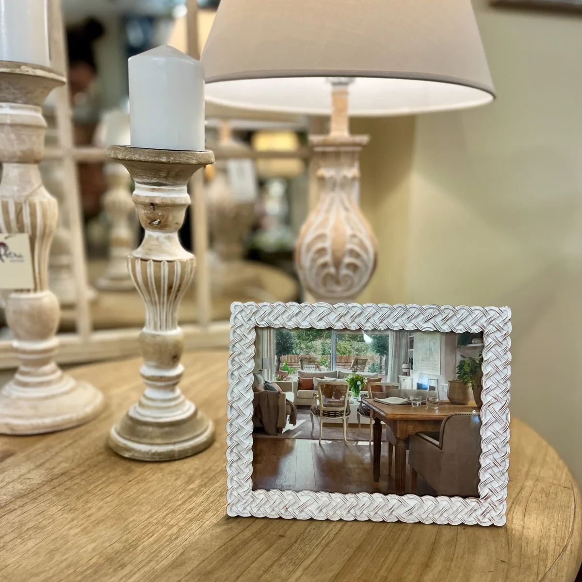Enmarca los mejores recuerdos con un portafotos blanco efecto desgastado con un diseño marcado por detalles trenzados en relieve. Un marco de fotos blanco de 18x2x23 cm fabricado en resina para fotos de 15x20cm. Un portarretratos versátil e ideal para combinar con todo tipo de estilos y el resto de la decoración. Combínalo con el tamaño para fotos 13x18cm para crear composiciones personales donde mostrar tus recuerdos más preciados.
