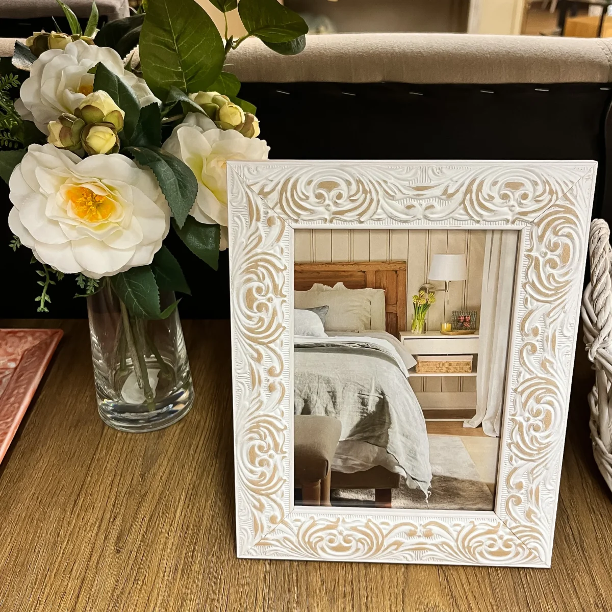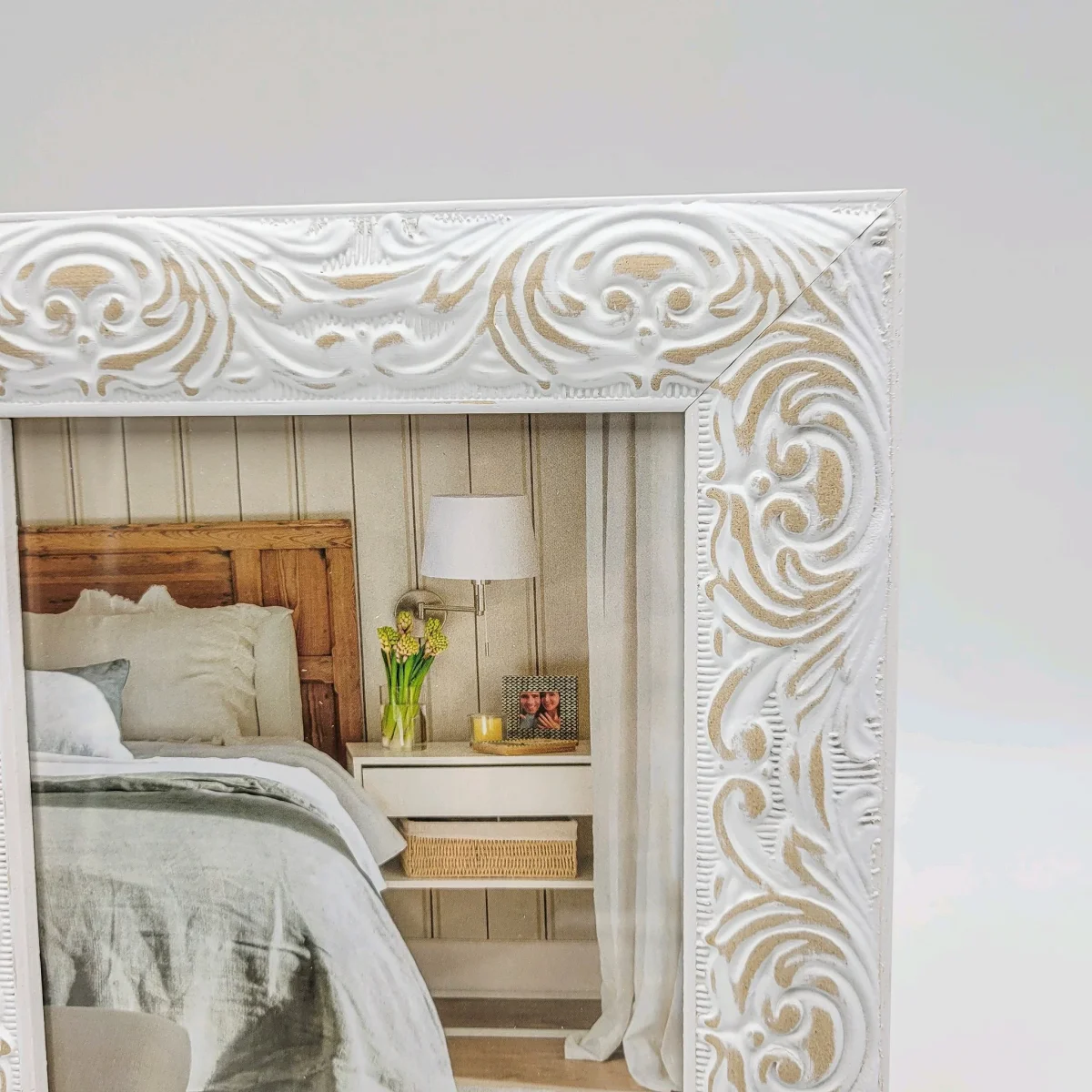 Un portafotos original fabricado en resina color blanco con relieve en formas abstractas. Versátil y adaptable a cualquier estilo decorativo. Colócalo en el salón, dormitorio o entradita para recordar tus mejores momentos inmortalizados.