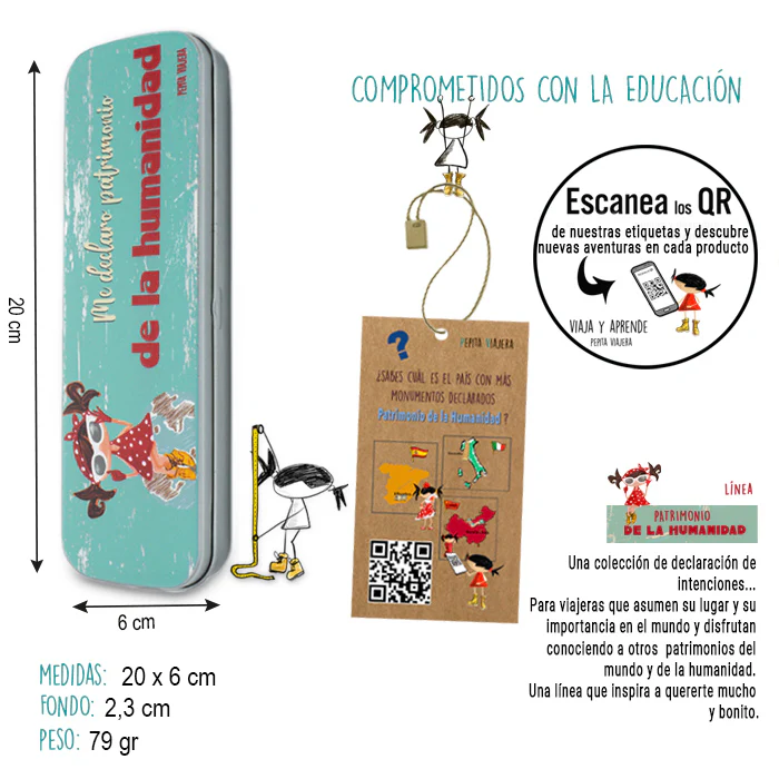 - Características del estuche portatodo metálico Me Declaro Patrimonio de la Humanidad
