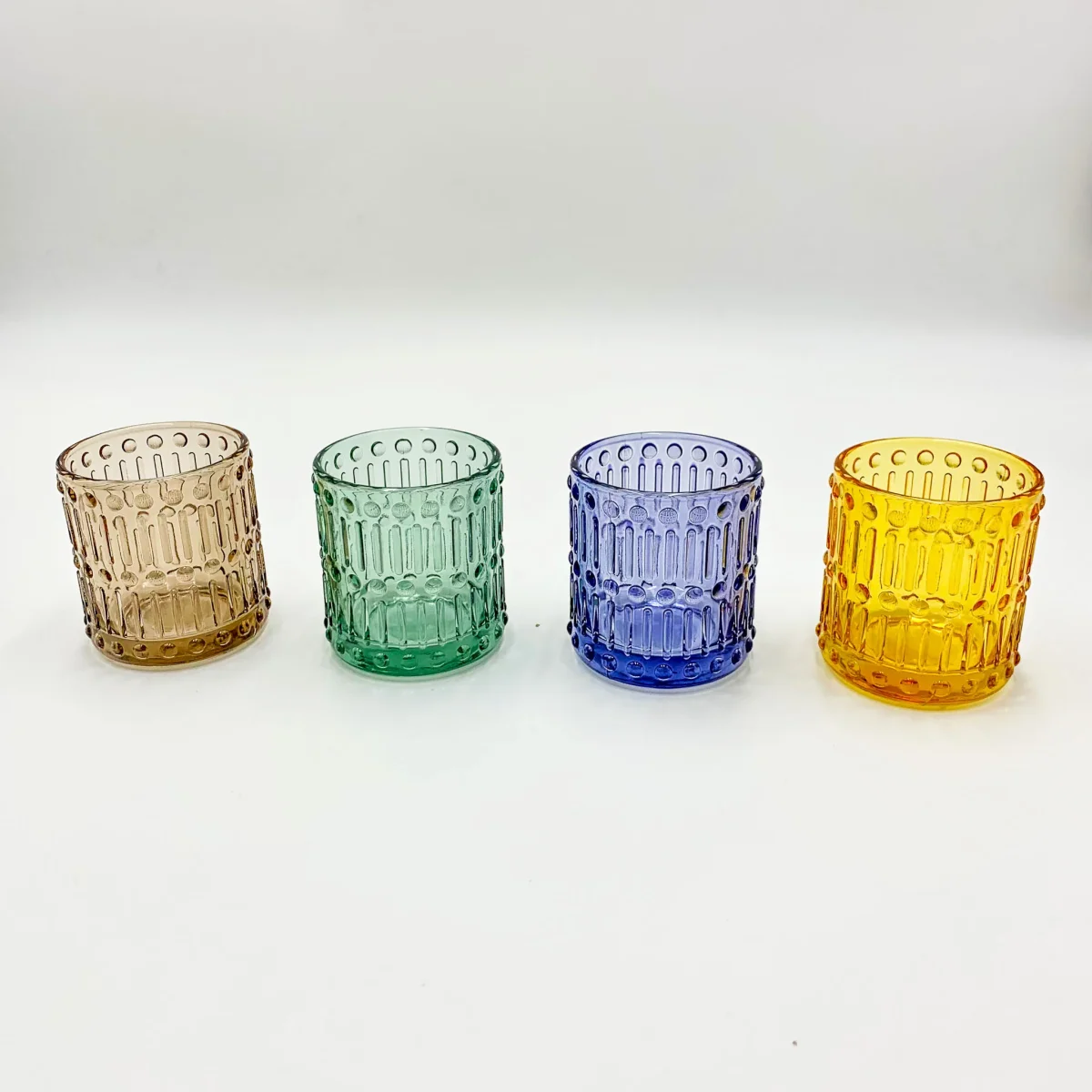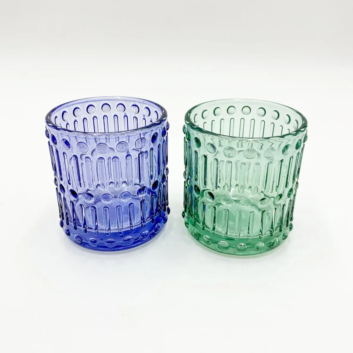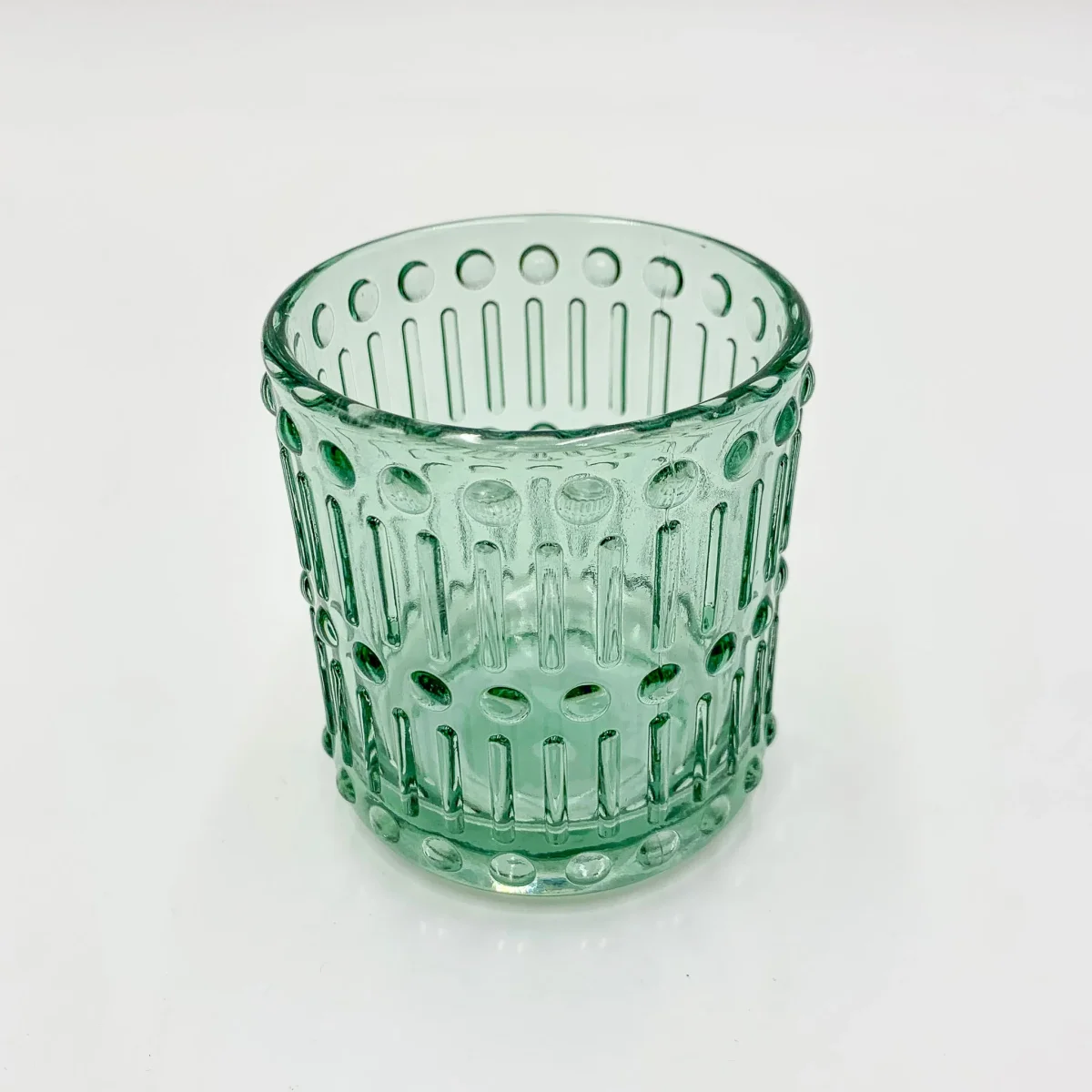 Un colorido portavelas hecho de cristal tallado en color verde. Combínalo con los dos colores a juego (azul y caramelo) y crea rincones llenos de color. No incluye la vela