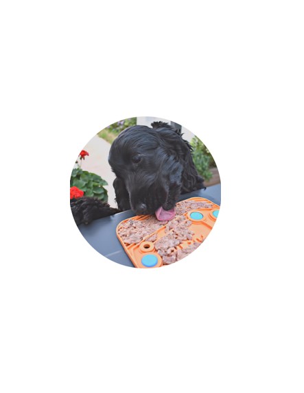 - Lick: bandeja (20x20cm) pensada para ofrecer comida de forma sencilla, diferente y divertida. Al lamer la comida untada en las ranuras de la superficie se favorece la salivación (beneficiosa para la limpieza bucal y la digestión) y genera hormonas que calman la ansiedad. Además, sirve de soporte para guardar los tapones de cierre (Lock).