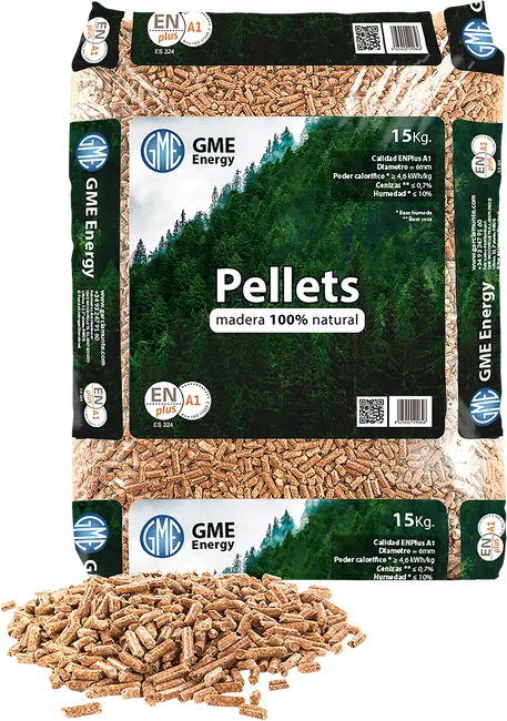 Pellet de calidad premium, fabricado con madera 100% natural sin corteza. Este saco de 15 kg ofrece una combustión limpia, uniforme y de larga duración en estufas y calderas de pellet domésticas.