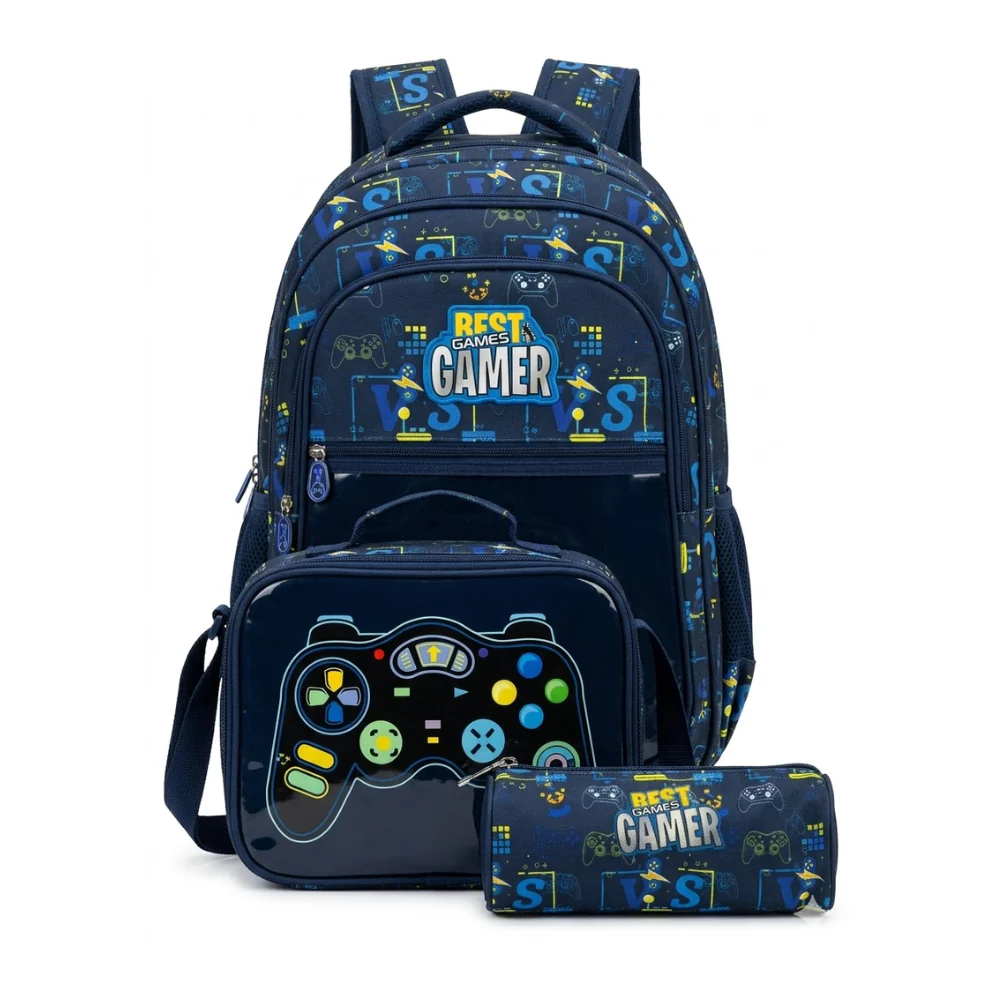 Equipa tu estilo gamer con este set completo de 3 piezas. Incluye mochila espaciosa para transportar tu laptop y accesorios, lonchera térmica para mantener tus alimentos frescos durante el día, y cartuchera organizadora para tus útiles y gadgets. Diseño moderno con temática gamer que refleja tu pasión por los videojuegos. Perfecto para estudiantes, trabajadores y gamers que buscan practicidad y estilo en un solo set.