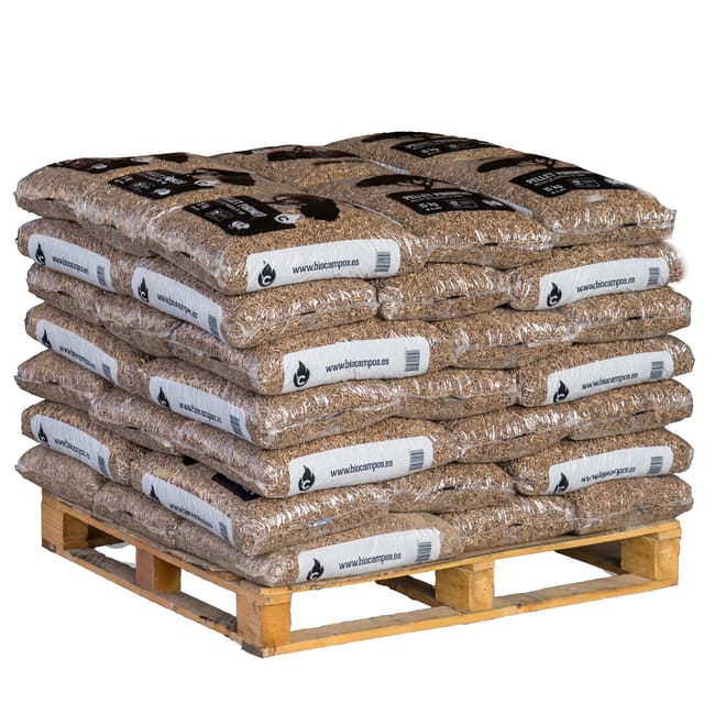 El pellet incluido cuenta con certificación de calidad que garantiza un poder calorífico superior y un nivel mínimo de cenizas. Su formato en palet con sacos manejables facilita la descarga, el transporte y el almacenamiento ordenado.