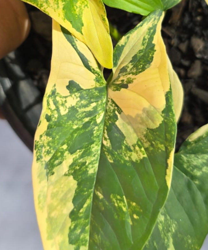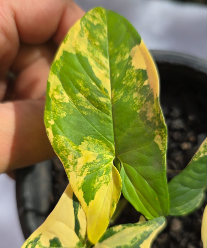 El Syngonium Aurea Variegata deslumbra con su mezcla de tonos verdes y amarillos que parecen atrapados por el sol. Su variegación áurea, única en cada hoja, le da una energía luminosa y cálida, ideal para quienes aman las plantas con personalidad propia.