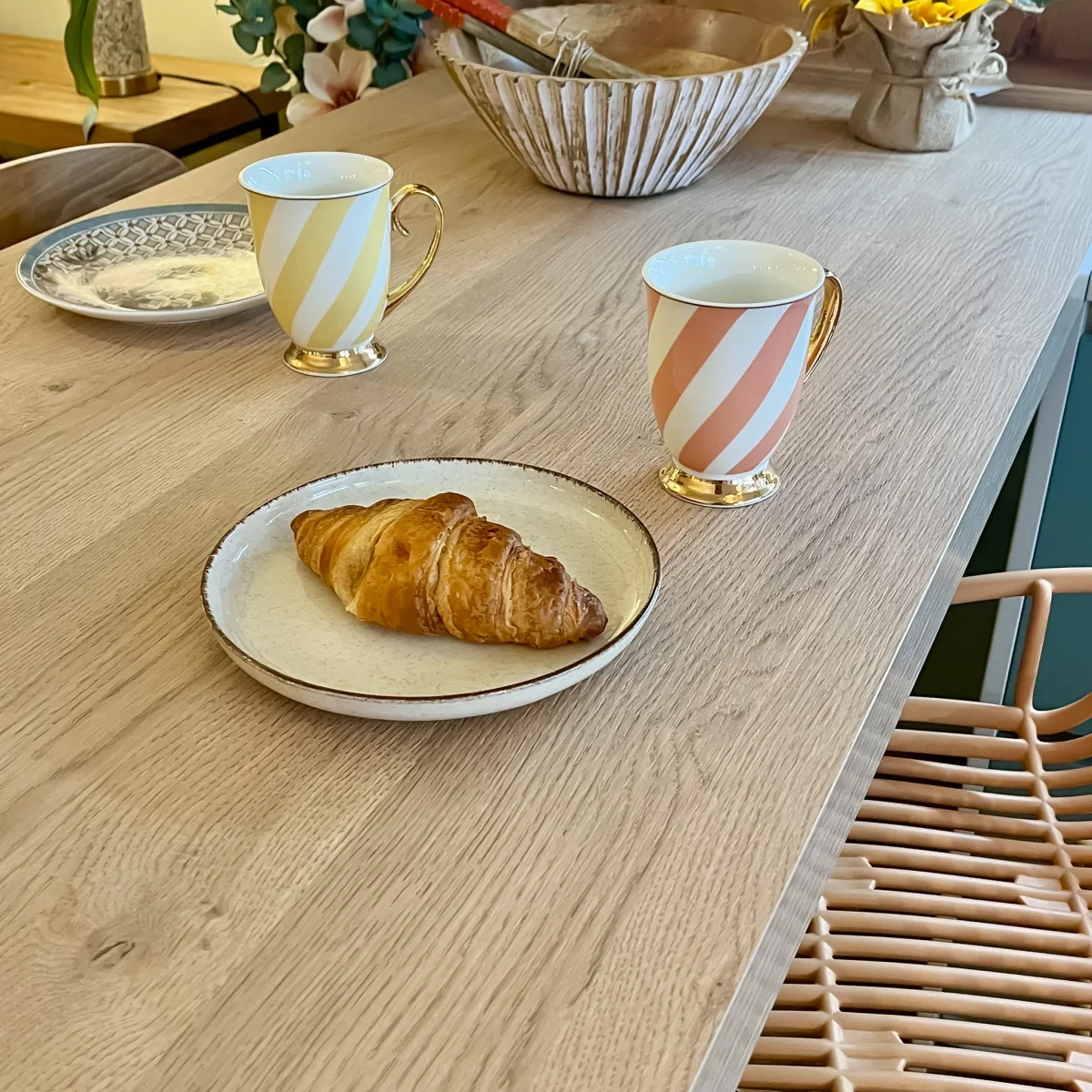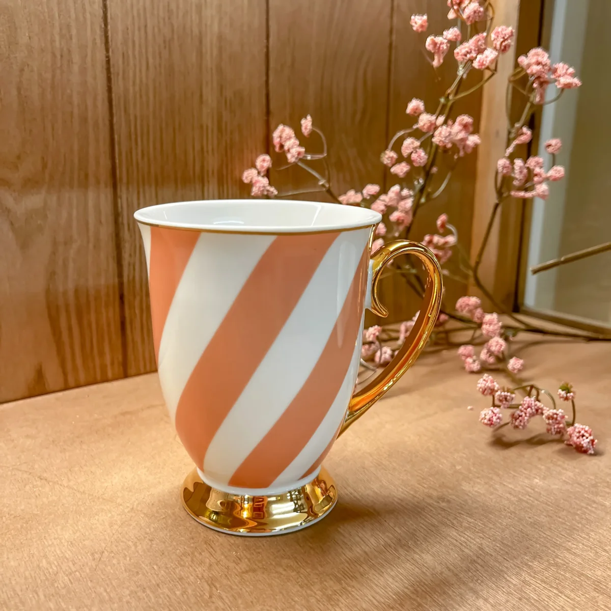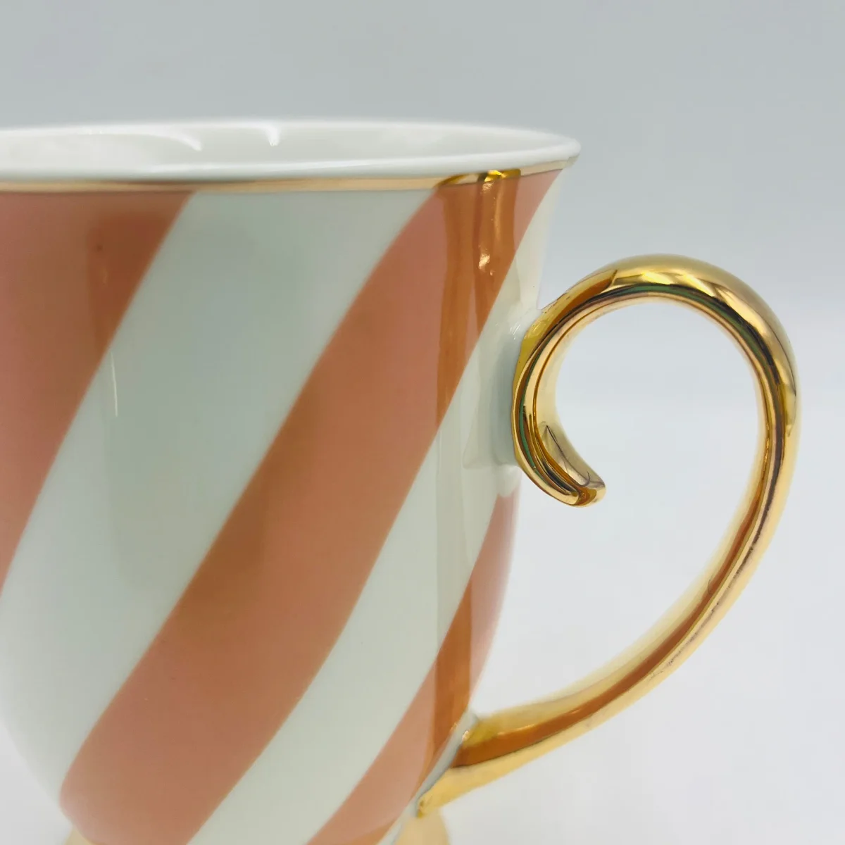 Una taza de porcelana que combina diseño y color para hacer hasta el café más simple sea especial. Su acabado en tonos pastel con rayas diagonales y asa dorada le da un toque original y elegante que hará que tu mesa luzca de manera especial. Fabricada en porcelana y con medidas de 9x11x11 cm, es perfecta para un café con amigas, el té de la tarde o para vestir tu cocina con un detalle especial. Se venden por unidades y está disponible en rosa, azul o amarillo. Cada taza viene en una caja individual muy especial, perfecta para regalar.