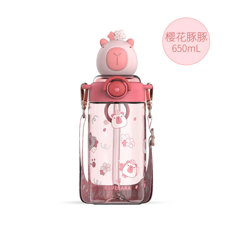 Esta botella con diseño de capibara es perfecta para acompañarte en el colegio, la oficina o donde vayas. Ligera, práctica y con cierre hermético, mantiene tus bebidas seguras mientras suma un toque de diversión a tu día. ¡Ideal para quienes aman lo cute y funcional!